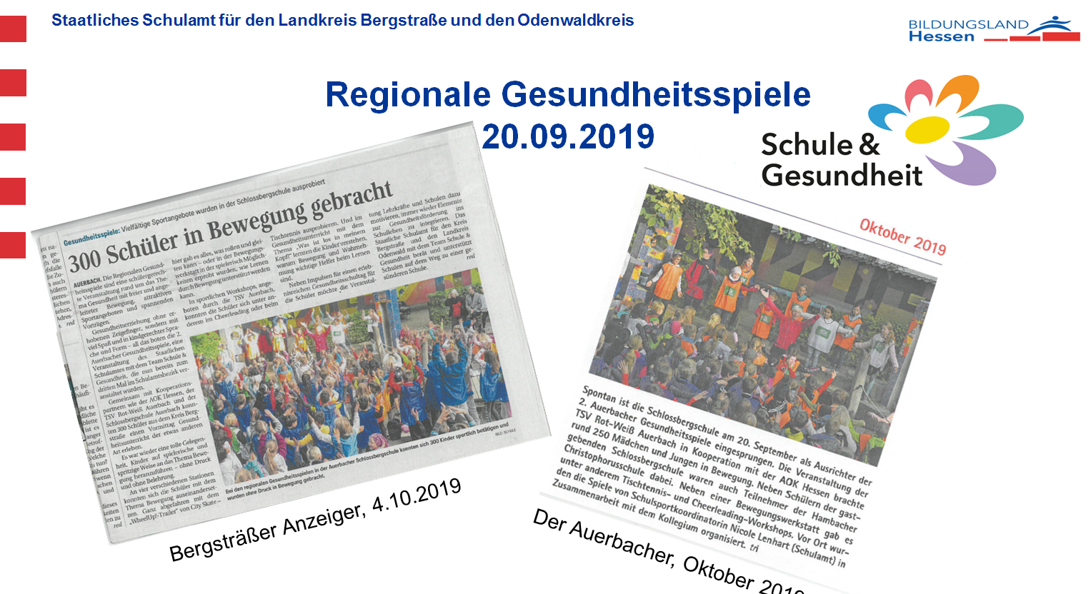 Dank der Unterstützung der Schlossbergschule, des staatlichen Schulamtes Heppenheim, der TSV Auerbach sowie der AOK konnten in diesem Jahr knapp 300 Schülerinnen und Schüler der Schlossbergschule und der Christopherusschule zum Thema Bewegung und Wahrnehmung sensibilisert und begeistert werden.